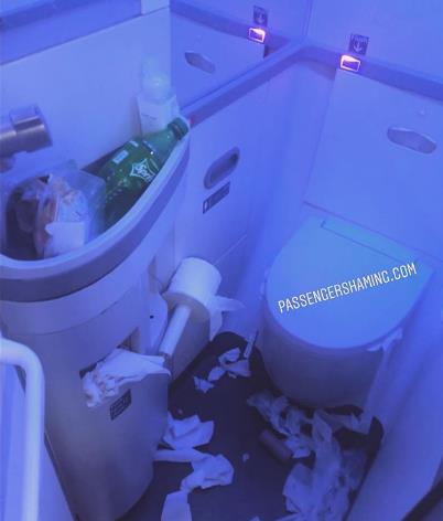 -空姐清理厕所时看到的景象,分明就是一个垃圾站,根本么得下脚的地方。