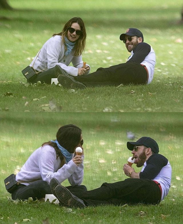 “美国队长”Chris Evans和“灰姑娘”Lily James在草地上嬉戏的照片甜煞众人,