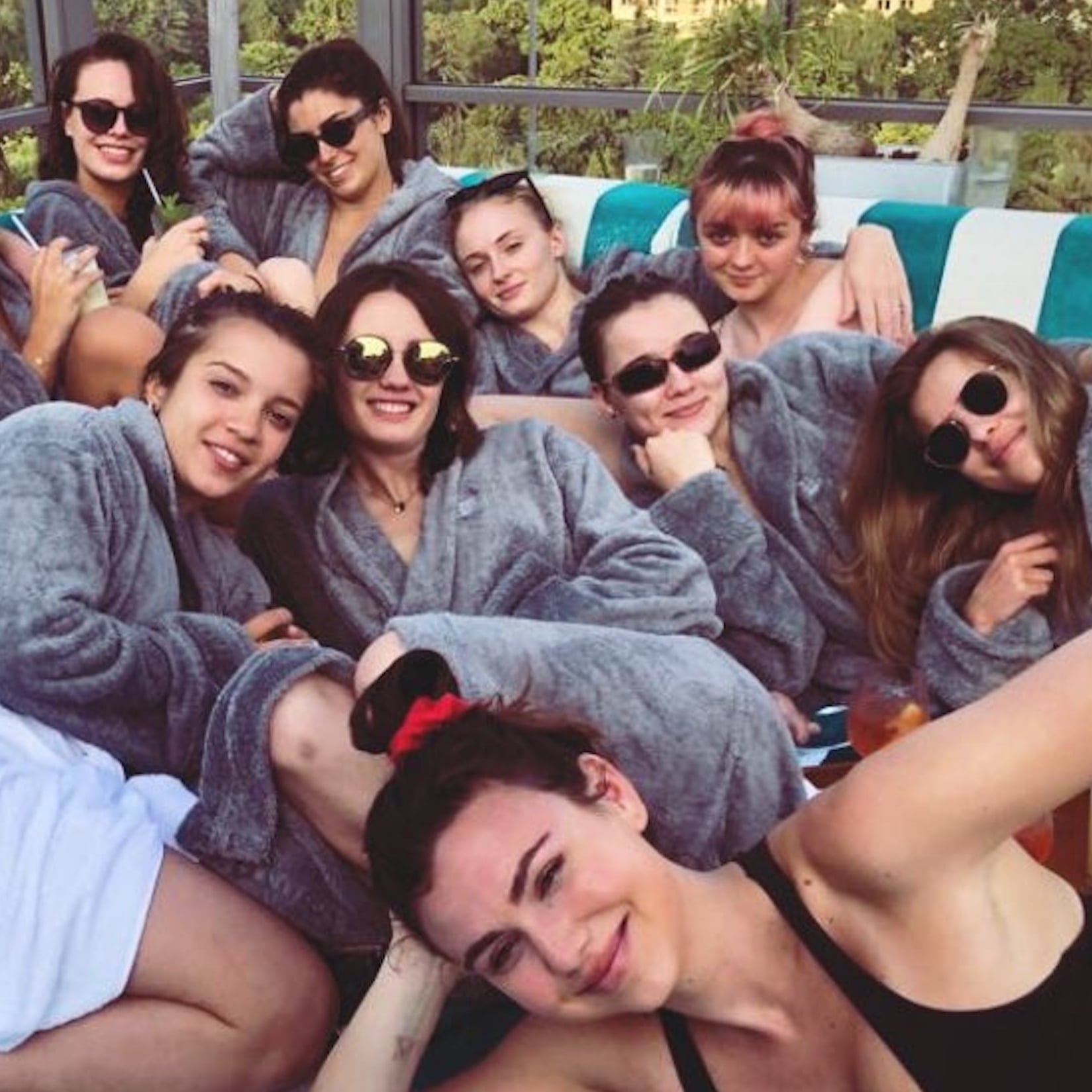 纳迪亚还和《权力的游戏》中Arya的扮演者麦茜·威廉姆斯(Maisie Williams)以及一众闺蜜飞往西班牙为她庆祝单身派对,