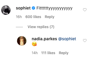 另外,纳迪亚的闺蜜,《权力的游戏》中珊莎的扮演者苏菲·特纳(Sophie Turner)还在这两张照片的评论区中激动地给她留言道:“超~~配!!!”