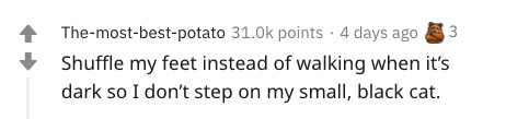 “为了防止踩到我的黑猫,我现在在暗处都习惯了拖着脚步走路。”