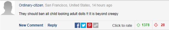 “应该立法禁止所有低龄形象的成人娃娃!这真的叫人毛骨悚然。”