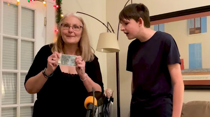 至于奖金嘛,在这里,一张10万亿面值的津巴布韦仿制纸币。