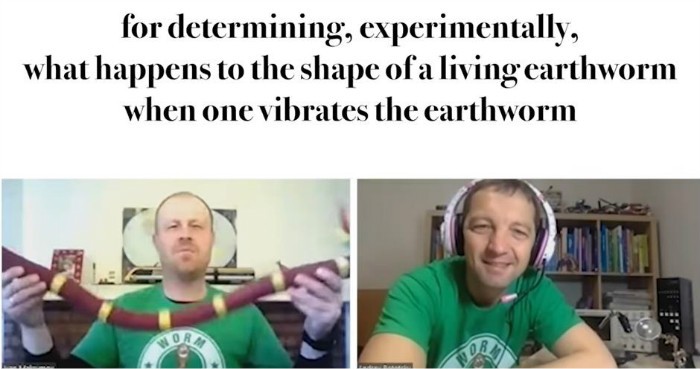 获奖的是两位澳大利亚的研究者,他们想研究蚯蚓能不能表现出法拉第波。