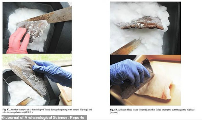 研究者决定实验一下“便便刀”是不是真的能切断皮和肉,