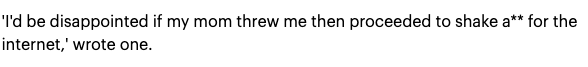 “如果我妈把我扔出去,还在网络上面大跳电臀舞,我会很失望的”
