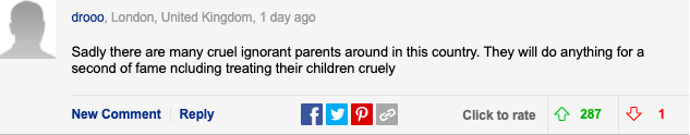 “这个国家中有很多残忍无知的父母,为了能出名一秒钟,他们什么都做得出来,包括残忍对待自己的孩子。”