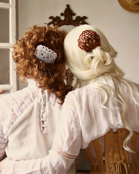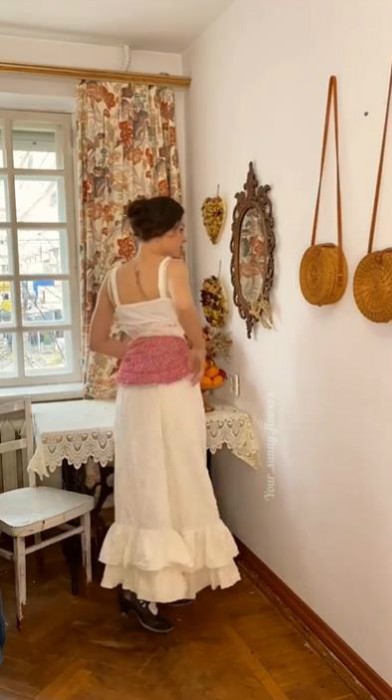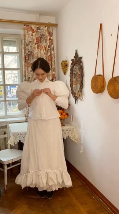 接着是第二层衬裙和蓬蓬袖衬衣,都是Mila自己手工做的;