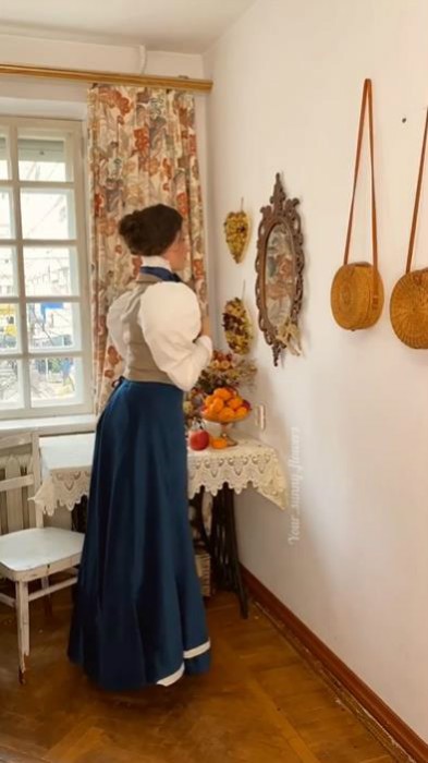 Mila尤其喜欢19世纪的服装,要想穿成古代的样子并不简单,