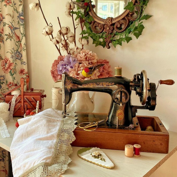 Mila有时也会分享一些复古静物照,打字机、缝纫机、梳子、首饰盒等等,都带有浓浓复古味道。