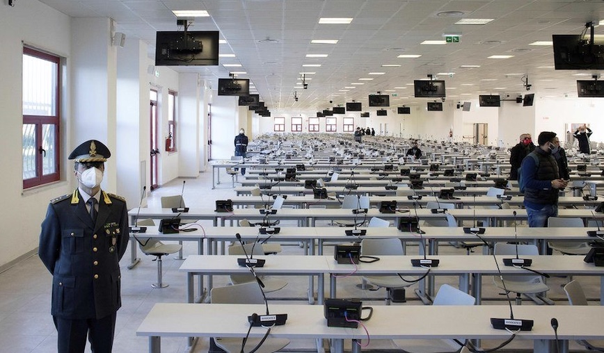 这几天,意大利南部黑手党“光荣会”庭审现场的图片刷爆了社交平台: