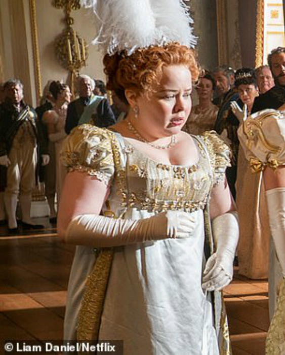 “身穿#Bridgerton剧组为我定制的紧身胸衣,是杰出的艺术家珍珠先生设计的。世界上最有名的紧身胸衣设计师打造的这件非常特别。”