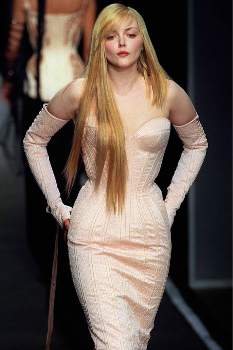 两人一拍即合,珍珠先生开始为Thierry Mugler秀场服装定制紧身胸衣,并展开了长期的事业合作,两人也成了多年好友。