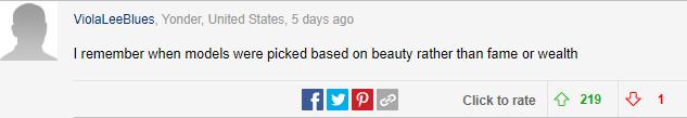 “我还记得模特能被选中是因为美,而不是名声或财富。”