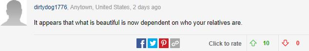 “看来‘美’的定义如今取决于你的亲戚是谁。”