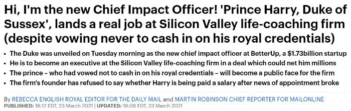 https://www.dailymail.co.uk/news/article-9395255/Prince-Harry-Duke-Sussex-lands-real-job-Silicon-Valley-life-coaching-firm.html#comments