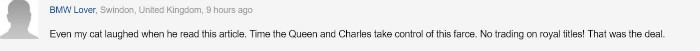 读了这篇文章,连我的猫都笑了。女王和查尔斯是时候管管这场闹剧了。
