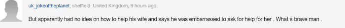 但是很明显,他不知道怎么帮助老婆,老婆向他求助让他尴尬。真是个勇敢的人啊。
