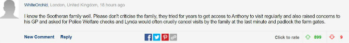 我认识Sootheran一家。不要怪罪这家人,多年来他们一直会定期探望Anthony,也向医生提出过担忧,并要求警察福利办进行检查,是女看护Lynda经常在最后一刻残忍地拒绝家人探视,并锁上庄园大门。