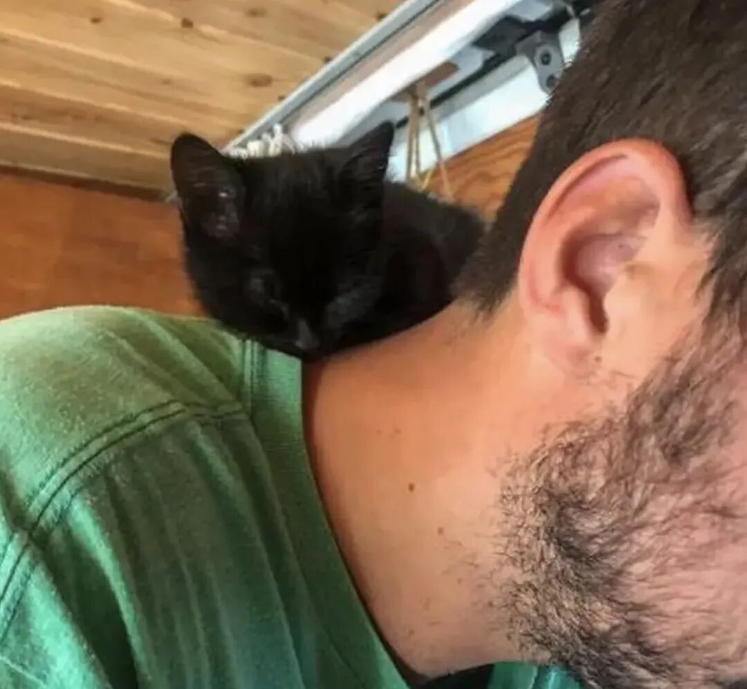 等它饱餐后,夫妻俩把小猫带回了他们的面包车,它乖巧地进了毯子,整夜都紧紧地依偎在他们身边。
