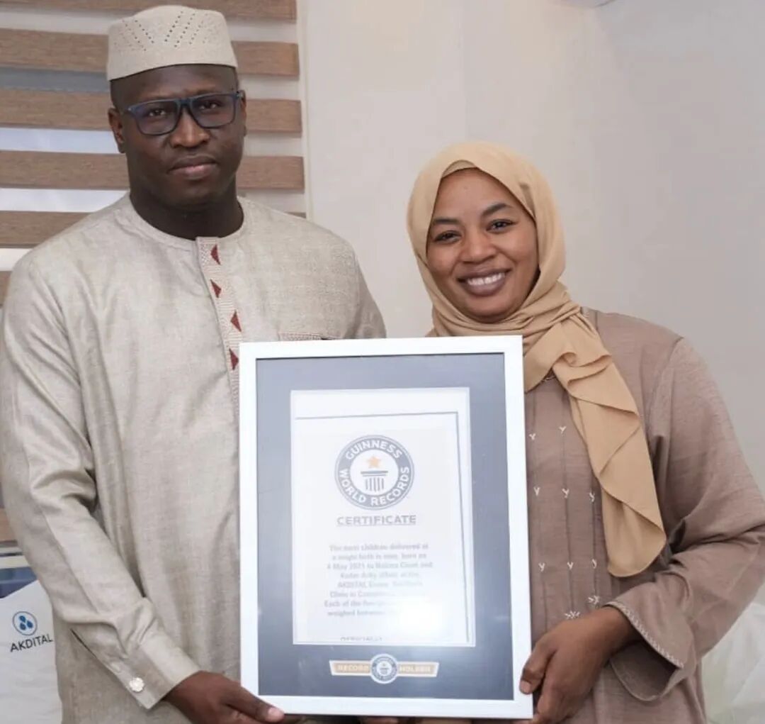 最终,Halima奇迹产下了9个娃,5女4男,一举打破了美国女子“Octomom”产下8胞胎的世界纪录…