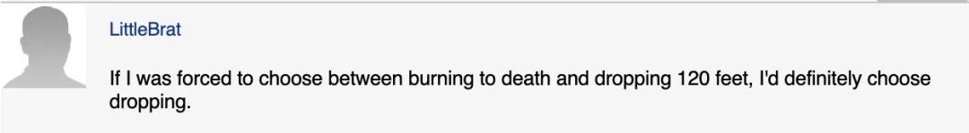 “如果我被迫在烧死和从30多米高空掉下来之间做选择,我肯定会选择掉下来。”