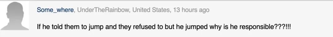 “如果他告诉他们跳而他们拒绝但他跳了,为什么他要负责???!!!”