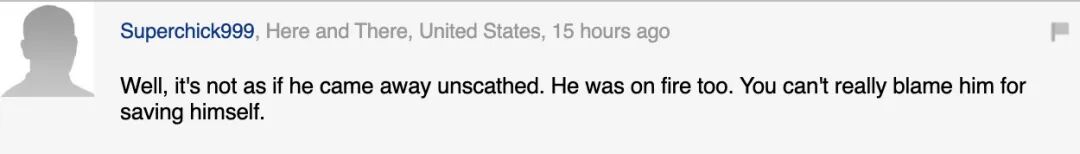 “好吧,他并不是毫发无损地离开了,他也被烧了。你真的不能怪他救了自己。”
