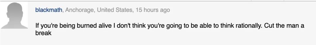 “如果你要被活活烧死,你也会没法地理性思考。对那个男人宽容点吧。”