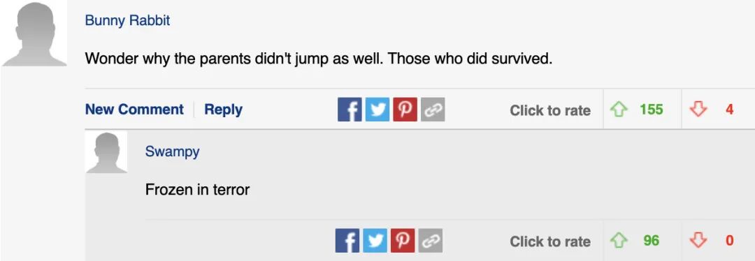 “想知道为什么父母不跳,那些跳的人都活下来了”、“(他们)惊恐地冻在原地了”…
