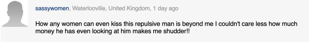 “怎么会有女人能亲吻这个令人厌恶的男人,我无法理解,我不在乎他有多少钱,甚至看着他都让我不寒而栗!”