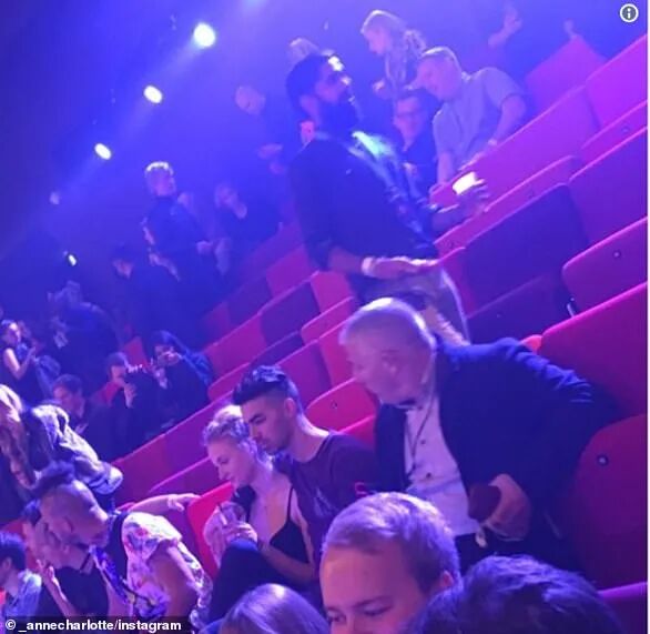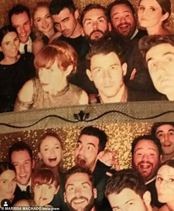 不到一个月,俩人共同出席婚礼,留下甜蜜升级的合照。照片里还有乔纳斯的弟弟尼克,说明当时索菲已经被乔纳斯介绍给了家人认识…