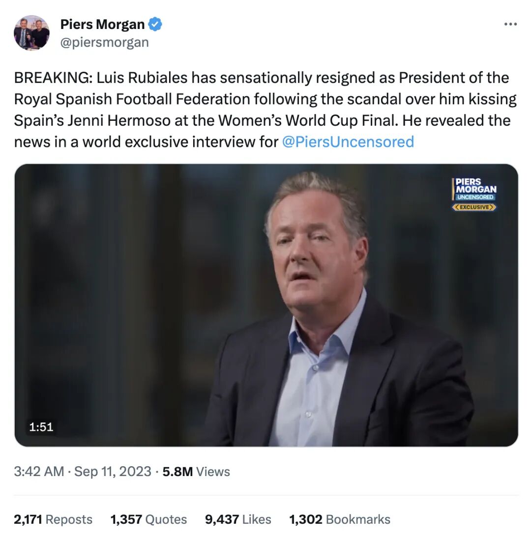 就在大家都以为卢比亚莱斯要宣布自己引咎辞职之际,他在8月25日公开演讲中语出惊人,不仅在言语间否认自己那天的行为属于性骚扰,更拒绝辞掉主席一职,甚至称那天即兴的亲吻是“两厢情愿”…