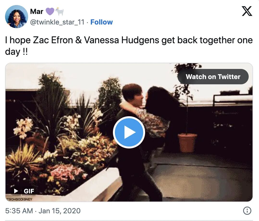 在07年接受迪士尼频道采访时,他们迫于公众压力,还没公布恋情,但埃夫隆直接表示他和瓦妮莎在试镜时就很投缘…身边人也都知道他们的关系,有餐厅老板也看到过他俩坐在一起,手牵手…