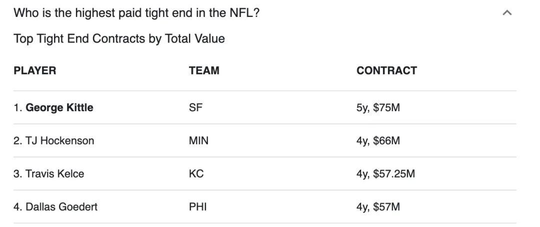 事业发展一帆风顺,薪水虽然不比霉霉,但也是NFL近端锋里第三高的…