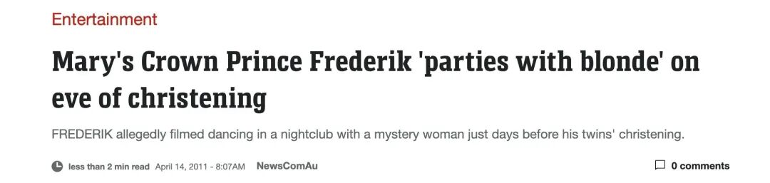 一次是在2008年,杂志《Svensk Damtidning》刊登了一张弗雷德里克的弟弟约阿希姆王子似乎要亲吻他的嫂子——玛丽王储妃的照片。
