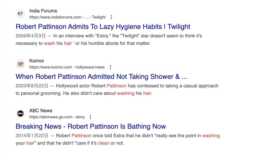 2009年,罗伯特在《Extra》的采访中亲口承认自己卫生习惯很差…