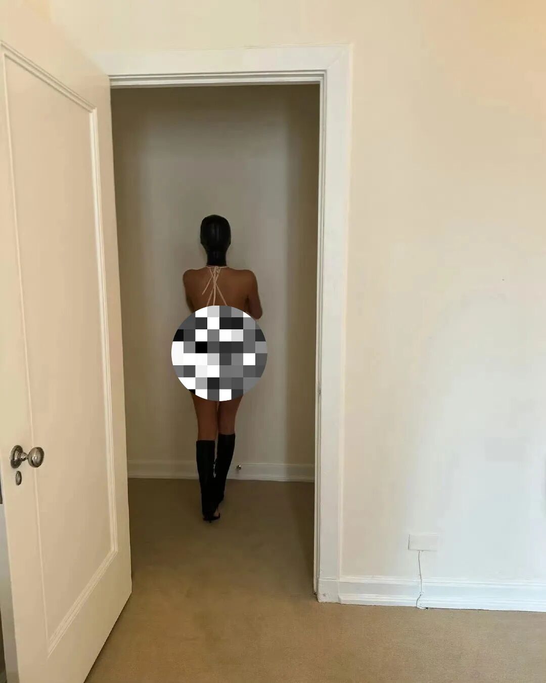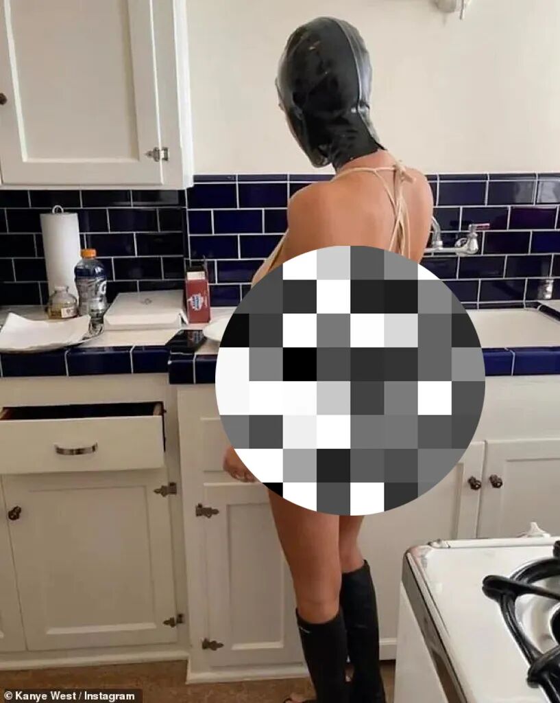 侃爷发了比安卡在厨房做饭的背影和走廊背影,从头到脚包裹最严实的部位只有头和脚。
