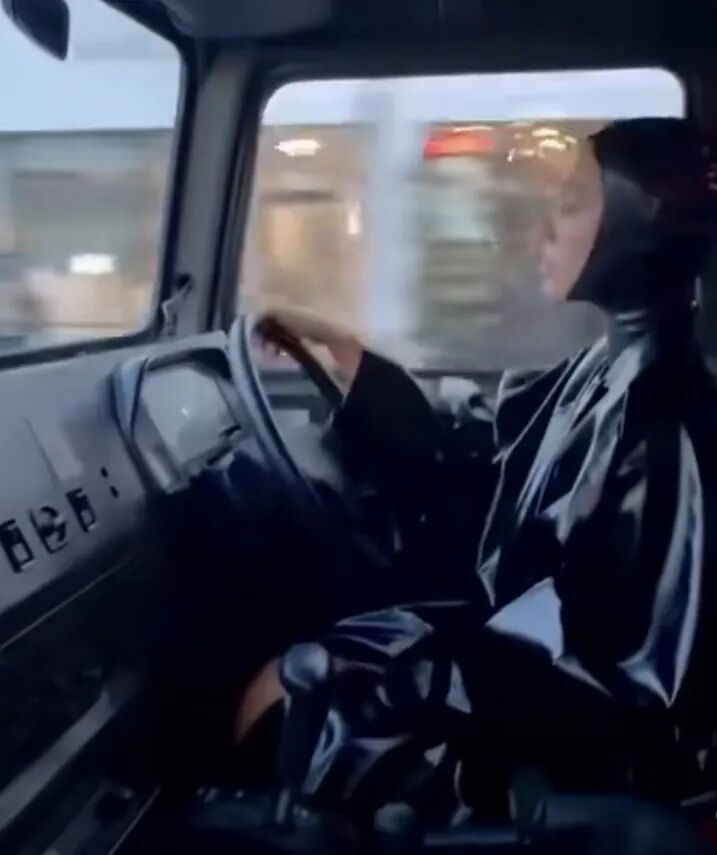 在被众人集体抵制了这几张照片之后,他终于换了风格,发了比安卡穿着一身黑衣开车的视频…
