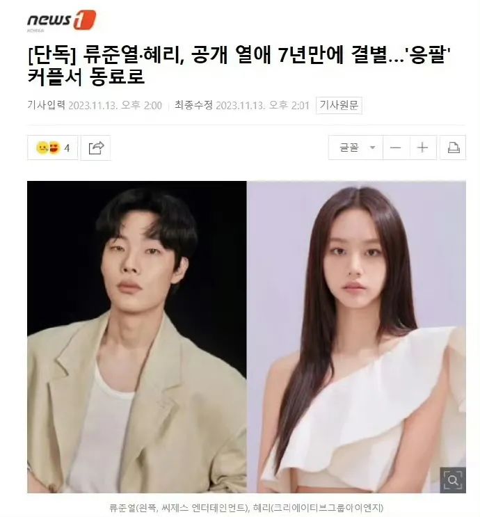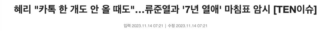2023年10月,有网友偶遇俩人在国外旅行,2023年11月13日,韩媒爆出两人分手的消息…