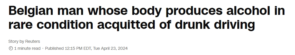 原来,男子A患有一种罕见的代谢疾病,名叫自动酿酒综合症(ABS)。