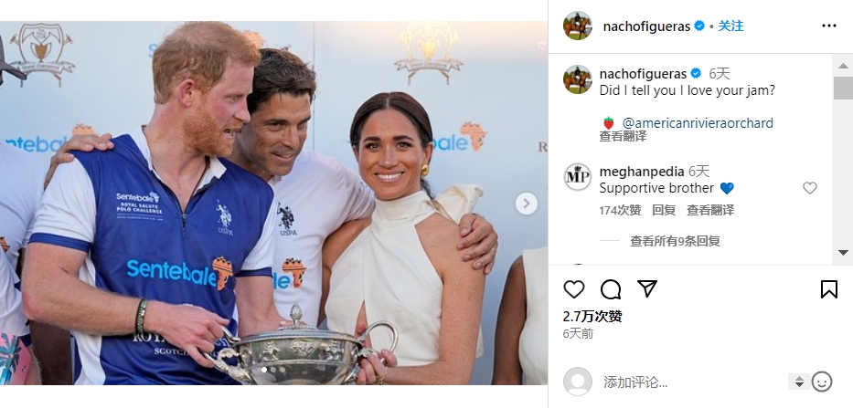 纳乔被称为“马球界的贝克汉姆”,哈里现在在加州打马球,跟纳乔是队友也是朋友,他们的妻子经常来为丈夫助阵,彼此也很熟,两家人关系不错。