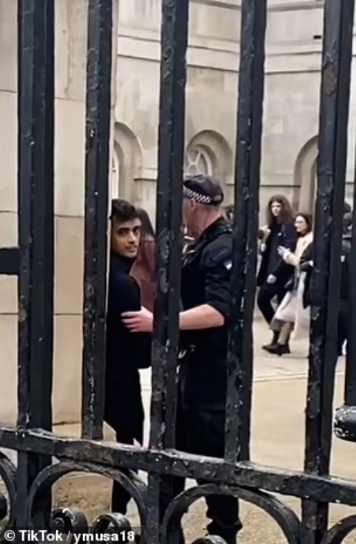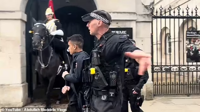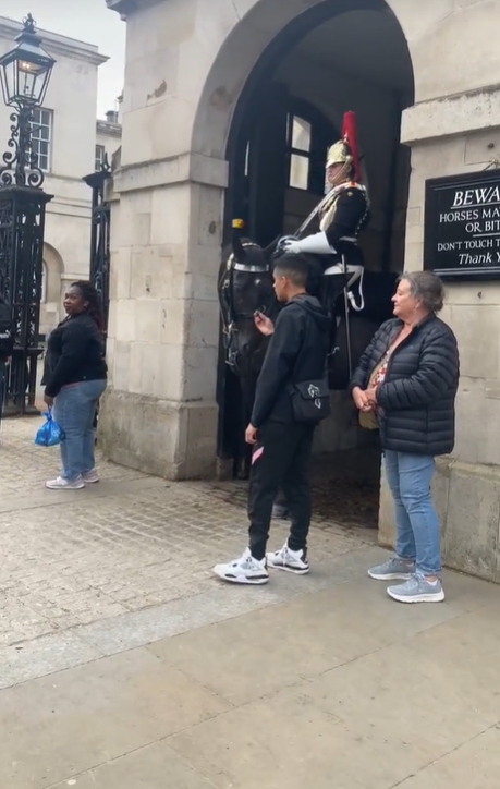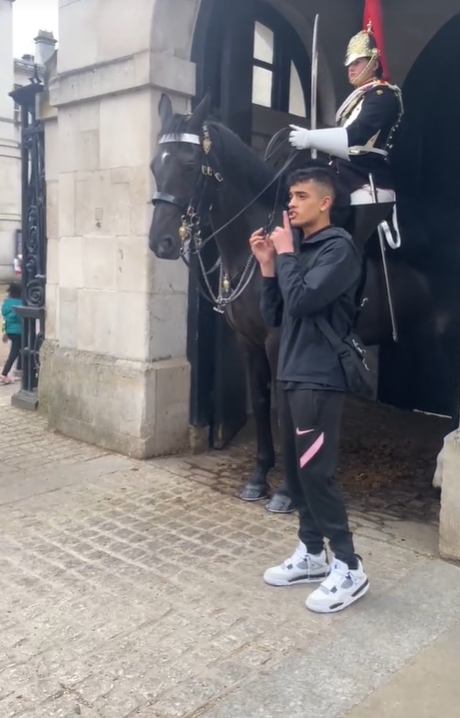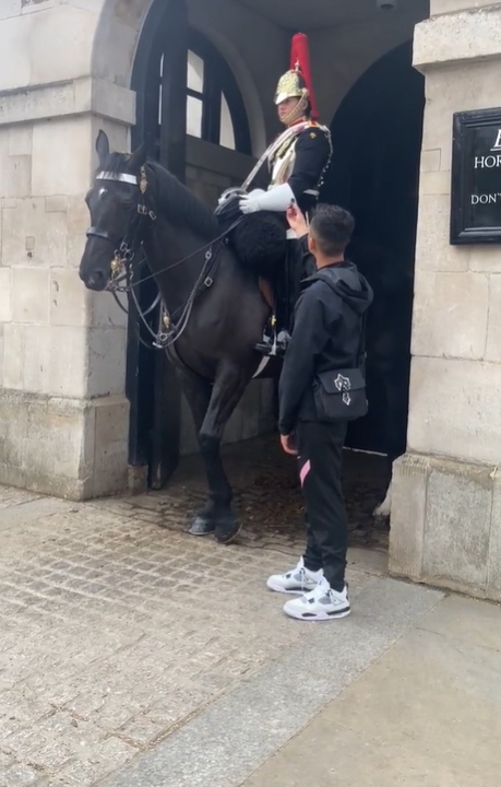 这天,他来到伦敦的骑兵卫队博物馆外,在一扇门前,有骑兵骑着马站岗。