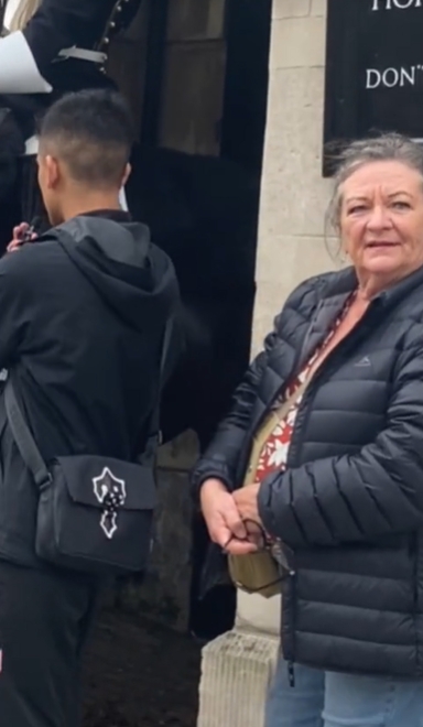 在他刚走过去要“采访”时,原本有一位女士站在马旁边合影。