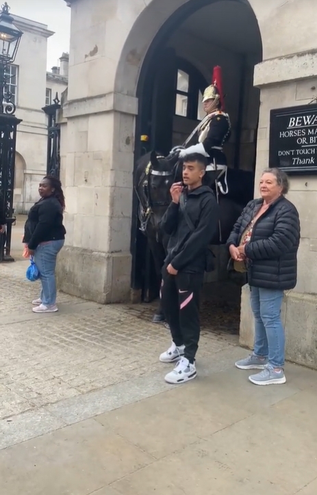 在Y玩得正欢时,其实他对面还有很多游客,原本人家都在给骑兵拍照。