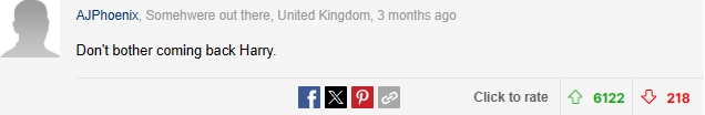 鉴于哈里在英国的人缘早已破裂,当时曾有不少网友冷嘲热讽: