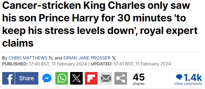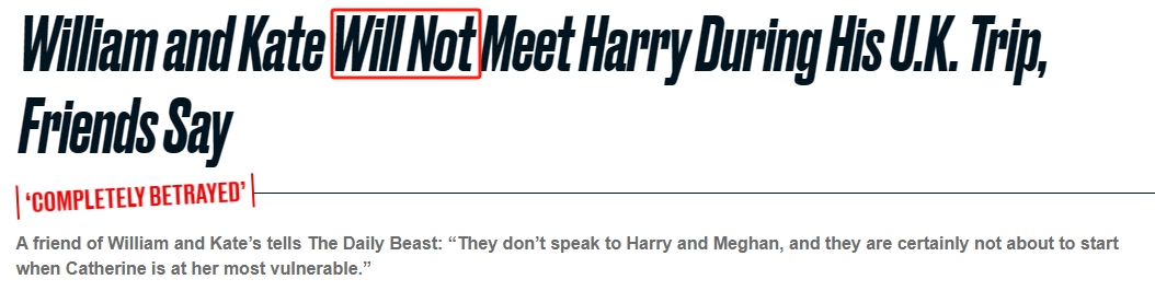 有的媒体甚至用了非常肯定的标题:《哈里王子和查尔斯将于癌症诊断后第二次碰面,确切日期已公布》。