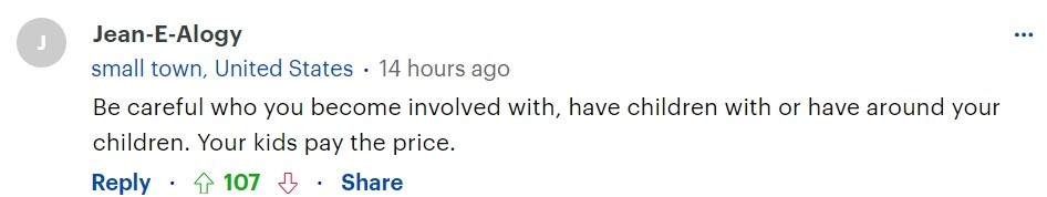“跟谁交往、跟谁生孩子或者让谁陪在孩子身边都要小心。你的孩子会为此付出代价的。”