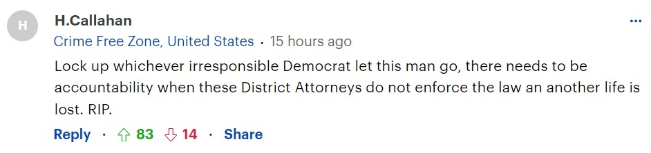 “把释放此人的不负责任的法官关起来,如果这些地方执法者不执行法律,又让一条生命丧失,就需要追究责任。安息吧。”