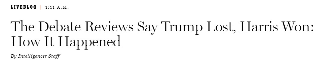 在吵吵闹闹中结束这场辩论后,很多媒体都表示,特朗普这次表现不佳,这波是哈里斯赢了。